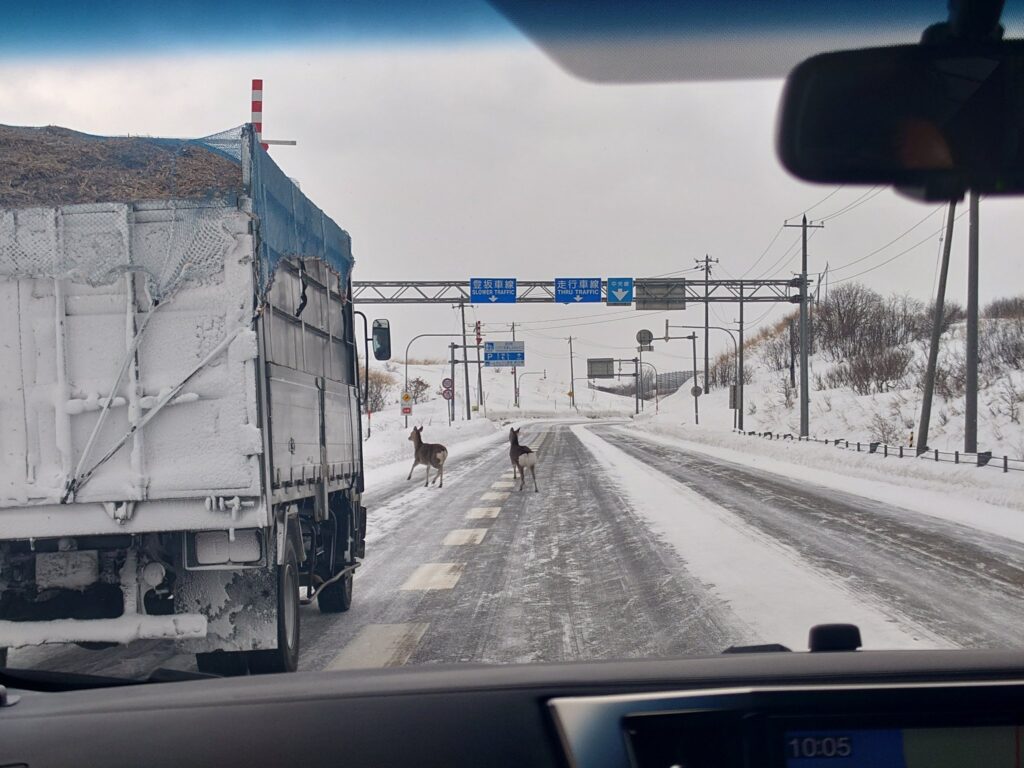 今朝ほど、天塩町に向かう国道上でシカと遭遇、危ない思いをしました