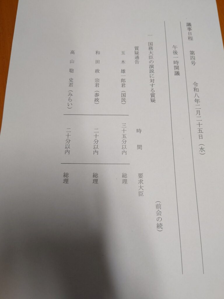 高市総理の所信に対する各党代表質問が終わりました