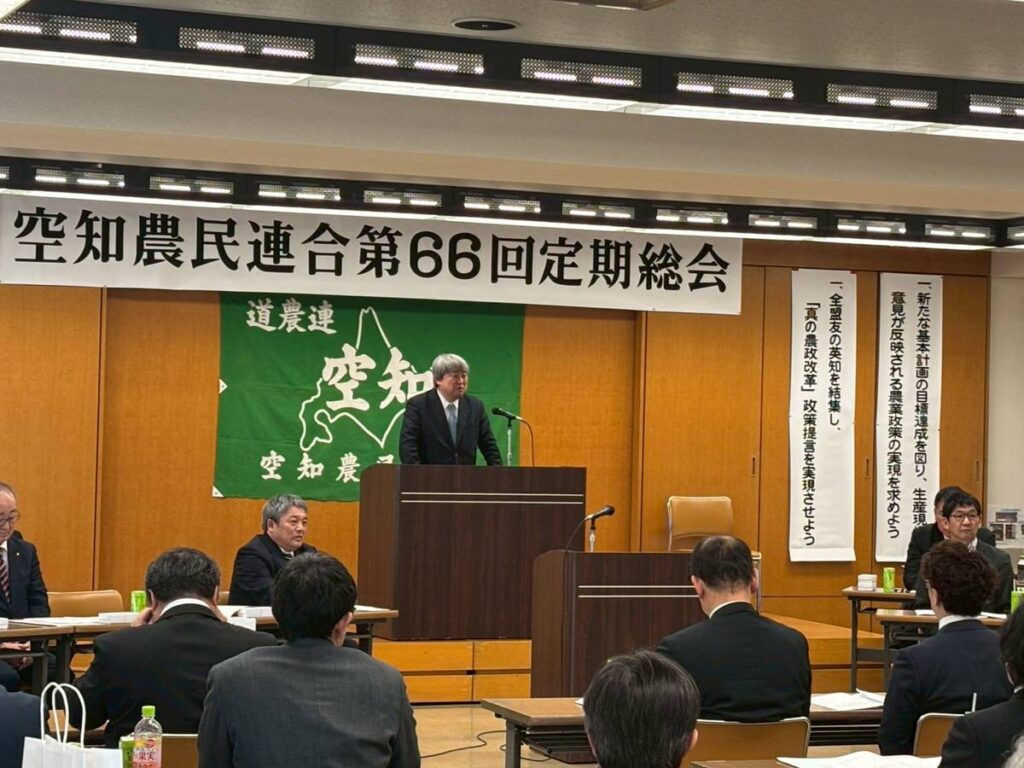 2026年2月13日 空知農民連合第66回定期総会 活動報告 衆議院選挙投開票日の翌日、農家の皆さんの団体である空知農民連合の定期総会に出席しました。 昨晩の衆議院選挙の結果を報告し、今後の農政について、私の思いをお話ししました。 これからも農政をしっかり取り組みたいと改めてお約束してきました。