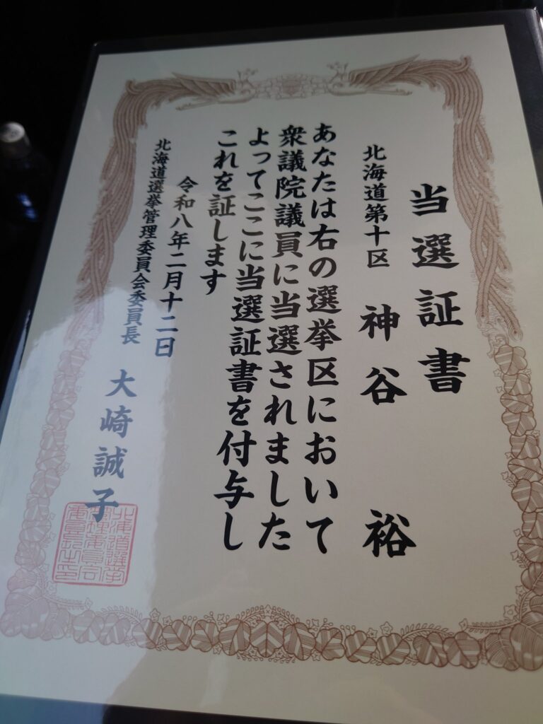 たった一人の野党当選者ですが、私も民意をいただいた一人として、堂々と頂いて参りました。